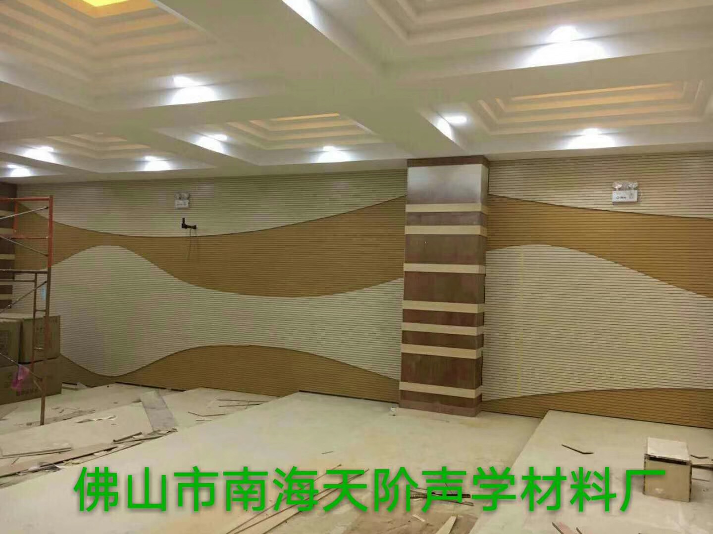 此多功能室建設基礎為一樓房頂的輕質房結構,輕質房的結構特點是建設簡單,工期短;使用方便,同時輕質房也有幾個方面的不足,其隔音效果差,隔溫度差,容易漏雨滲水,在此,結構問題經過防水細心的施工,及材料的合理使用可以處理,這時候就可以用到我們的天階吸音板了。