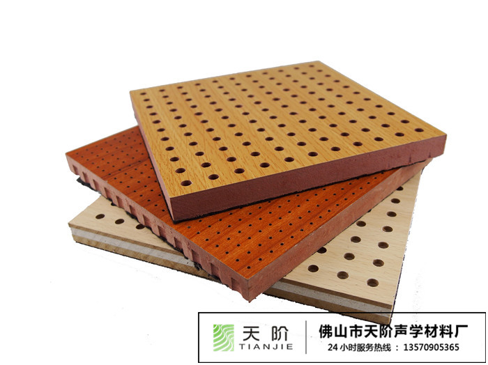 1、木質吸音板:木質吸音板是一種在密度板正面開槽,背面穿孔的狹縫共振吸聲材料。對吸聲頻譜選擇性很強,木質吸音板對中低頻有很好的吸音性能。如在吸聲結構后空腔上填入適量的吸聲棉可提高中、高頻的吸聲效果。天階聲學木質吸音板采用優(yōu)質的板材,最高具有E1環(huán)保、A2級防火、防水等性能,飾面顏色及材料選擇性廣,能滿足客戶多樣化的選擇。較槽木吸音板,孔木吸音板相對抗撞擊能力強。