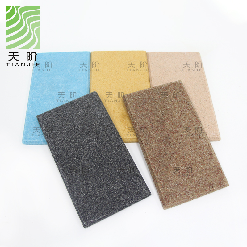 的主要特防 火:燃燒性能為 A級,可廣泛應用于各種種場所 ,吸聲:高、中、低吸聲頻率率特性可調,適用用于各種吸聲要求環保, 遠低于國家標準≤0.5的的要求 ,防潮:濕脹率僅 0.16%,防潮性能優異, 砂巖吸音板抗凍:經凍融循環試驗檢測測,無起層和龜裂裂等破壞現象抗沖擊:抗沖擊強度優于同厚厚度水泥纖維板耐老化:抗紫外線試驗結果顯顯示,性能保持不不變,裝飾:獨特的砂巖質感,簡約質樸的風格。