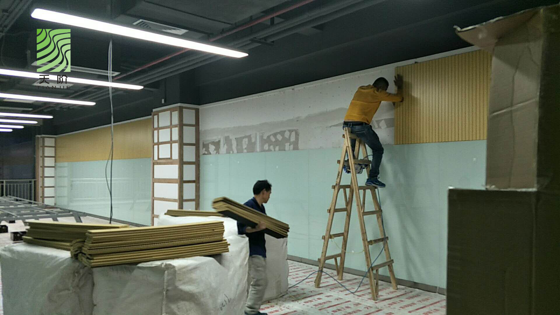東莞藍思科技有限公司辦公室經和多家吸音板公司對比,最終選用了天階吸音板,安裝效果圖如下:
