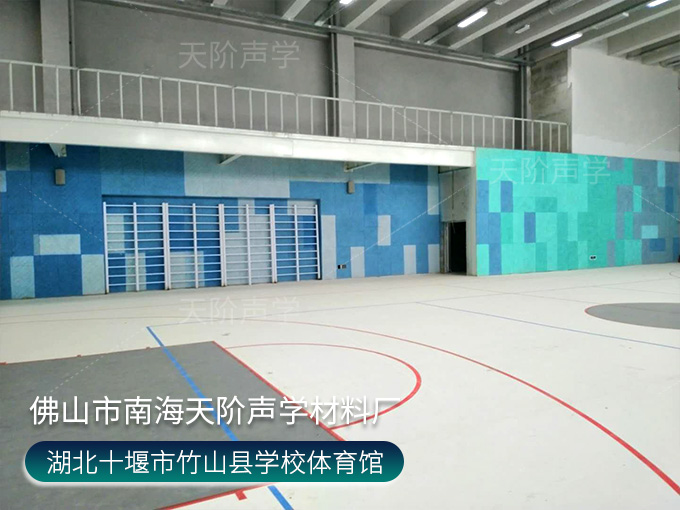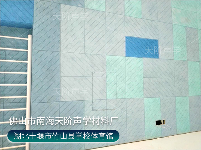 湖北十堰市竹山縣學校項目選用彩色噴色的木絲吸音板,原料是白楊木絲纖維制作而成,環保安全,遇火不燃燒,木絲間吸音降噪,效果顯著,表面有彩色噴色和原木色可選。
