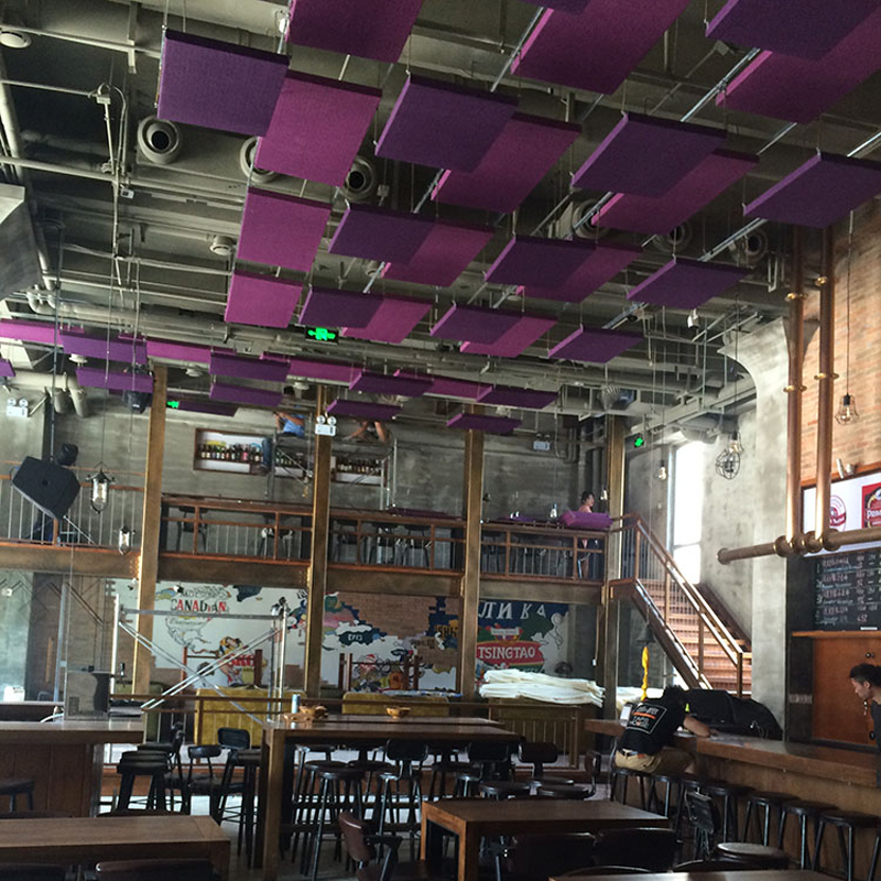 房間凈高的1/5至1/7左右,達到吸聲及裝飾的要求;若條件允許,可掛得更低些,離聲源近些。為了提高懸掛空間吸聲體的建筑裝修效果,應對空間吸聲體的形式、色彩、懸掛方