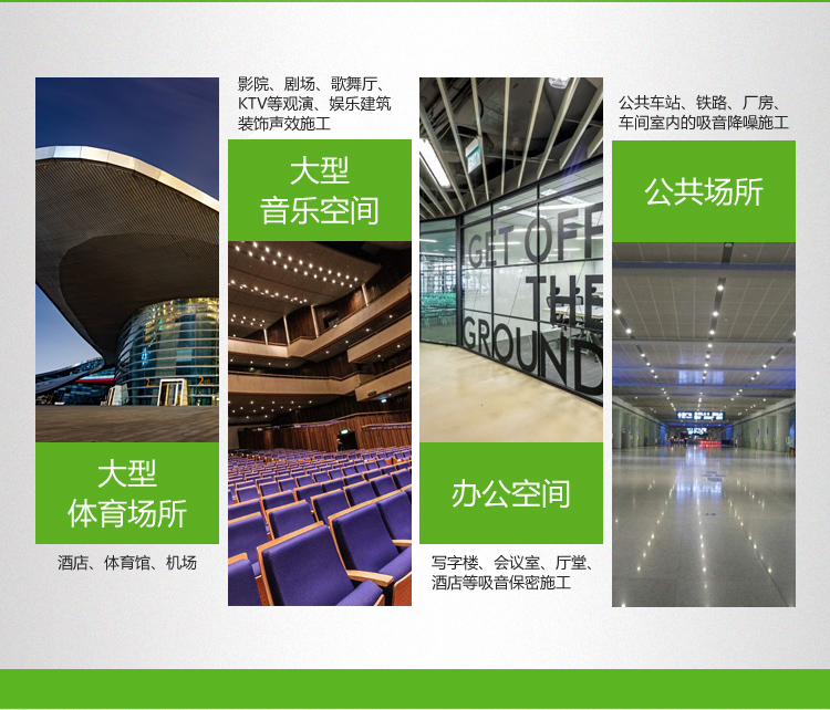 廣泛適用于室內體育館、噪音過大的工廠,也適用于廣播電臺、電視臺錄音室、演播室、學校、大劇院、圖書館、文化中心、禮堂、多功能廳、會議室及音樂廳等對音質要求較高