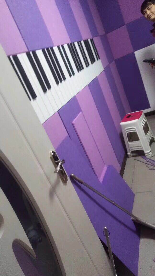 在小房間內,由于長、寬、高的尺寸與低頻聲波的波長很接近,容易引起聲音的失真(或稱染色現象)。一般設計成不規則室形較好,其次是梯形和扇形,矩形最差。無論何種室形,在房角處聲級較高,特別是不規則形的銳角處更為突出,因此,在不規則室形中切除銳角,則聲場不均勻度將有明顯的改善。琴室墻面和頂棚加設吸聲材料后,頻率不均勻度會有明顯改善。