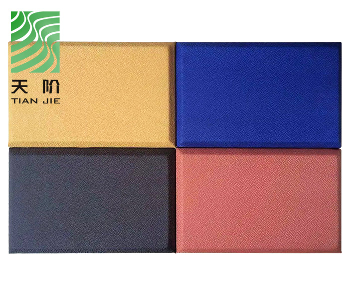天階聲學布藝吸聲板采用高質的96kg/m3玻璃吸音棉。具有環保、阻燃、吸聲頻帶寬、裝飾性強、施工簡單、無粉塵污染等性能,飾面顏色及材料選擇性廣,能很好地滿足客戶多樣化的聲學及裝飾需求。
