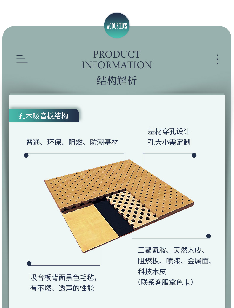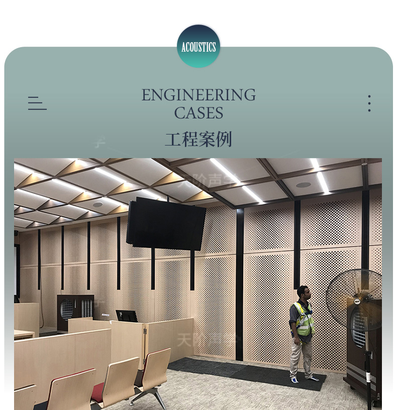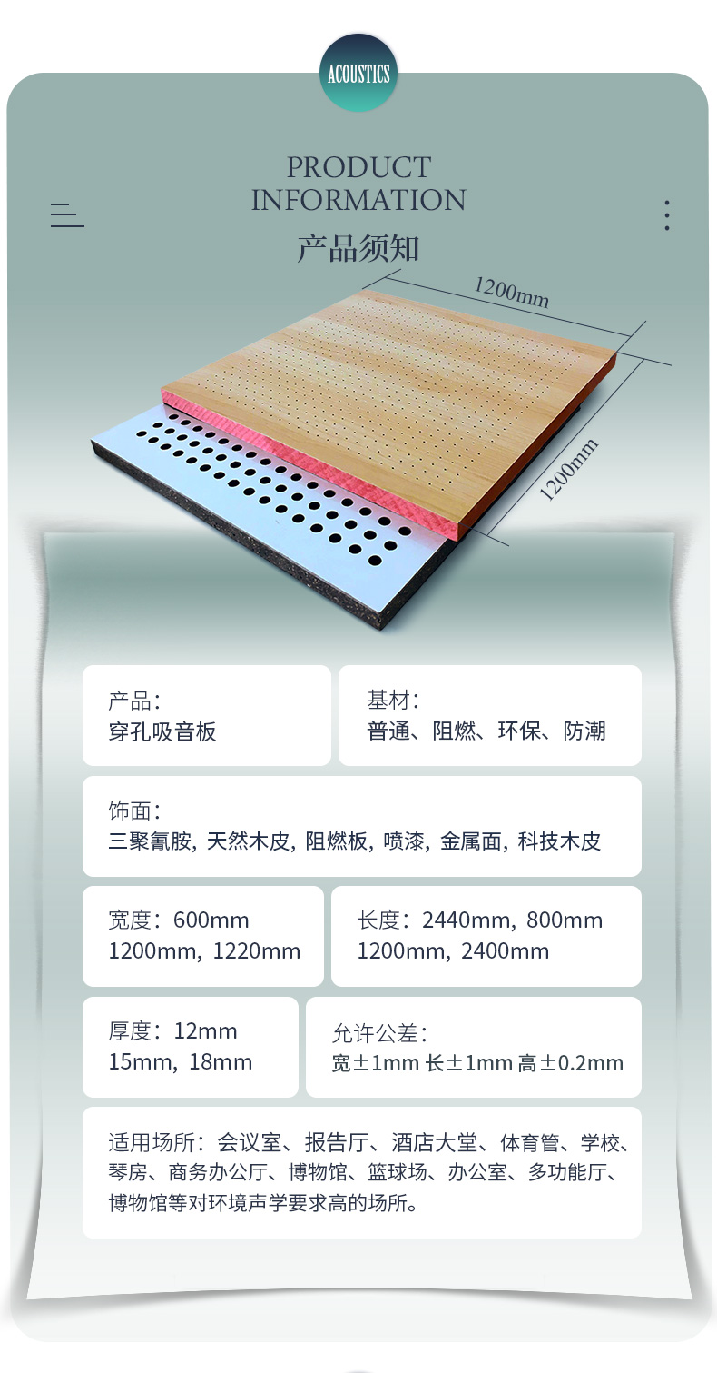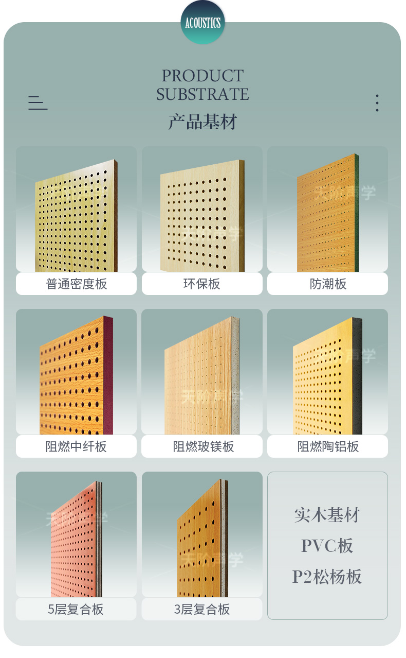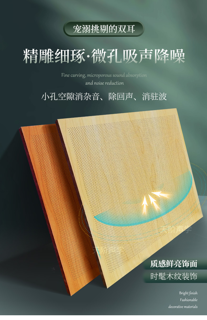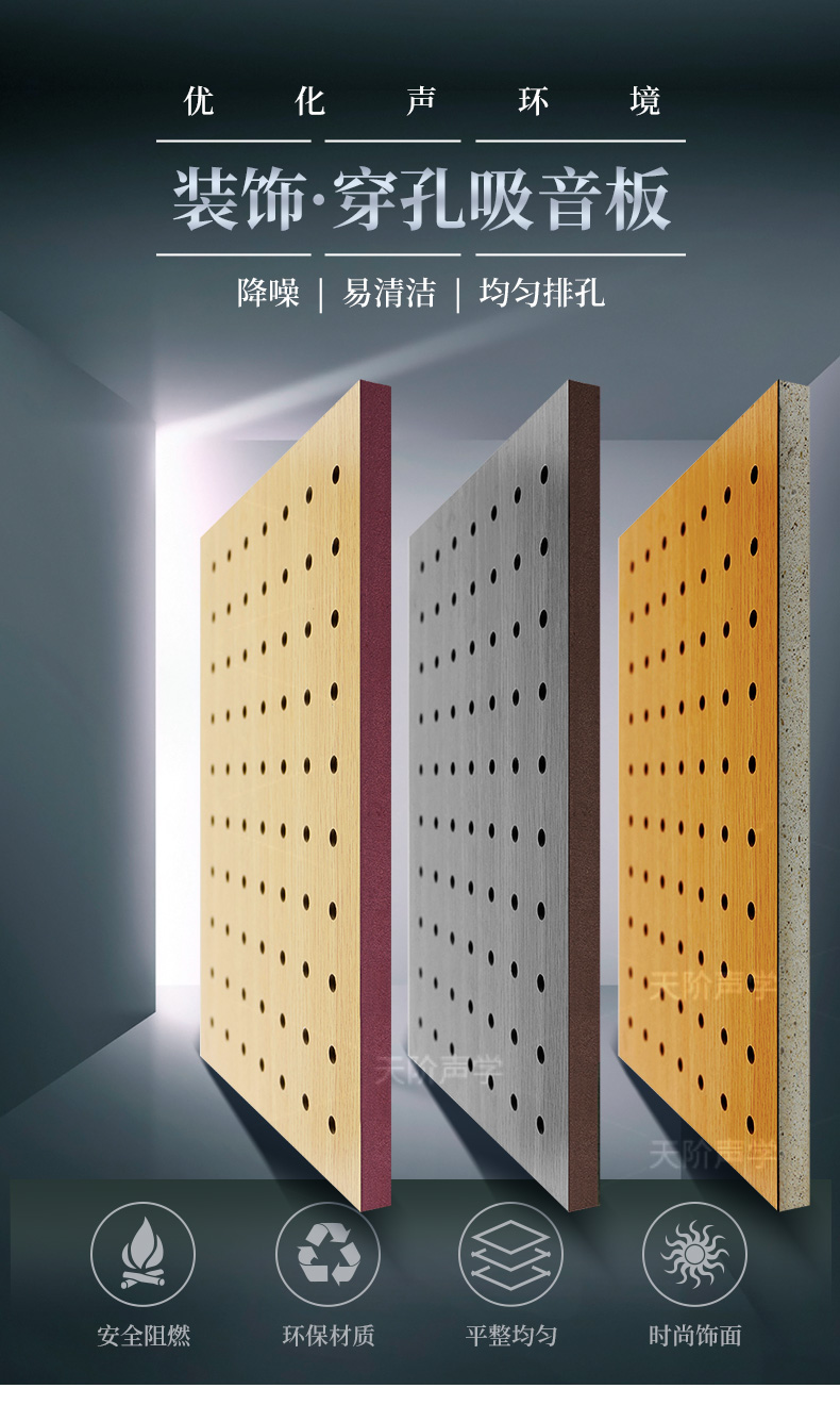 您現(xiàn)在的位置首頁 ? 槽木木質(zhì)吸音板 - 軟包 - 防火吸音板 - 聲學產(chǎn)品 ? 孔木吸音板 ? 玻鎂陶鋁穿孔吸音板會議室專用吸音板 防火阻燃木質(zhì)吸音板