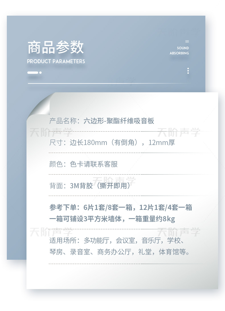 產品名稱:六邊形-聚酯纖維吸音板